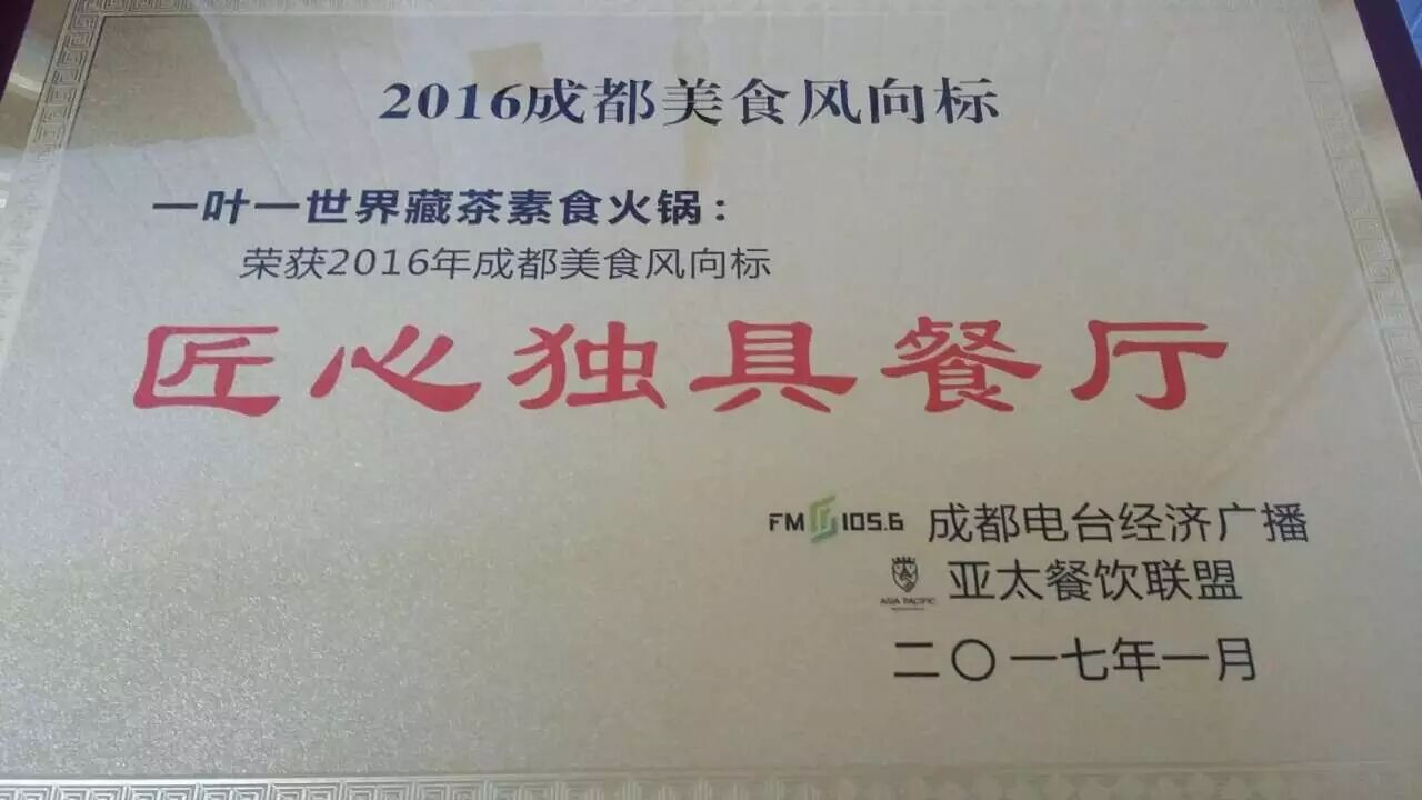 从“餐饮大咖运动会”开始的成都美食风向标评选活动,在1月11日最终评选出炉!一叶一世界藏茶素火锅获得多个奖项!